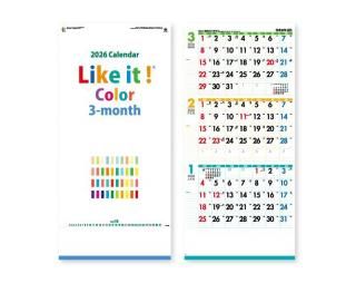 2026年 IC-302 Like it ! Color 3-month(ミシン目入) 【壁掛けカレンダー】【名入れ印刷 無印50部から】
