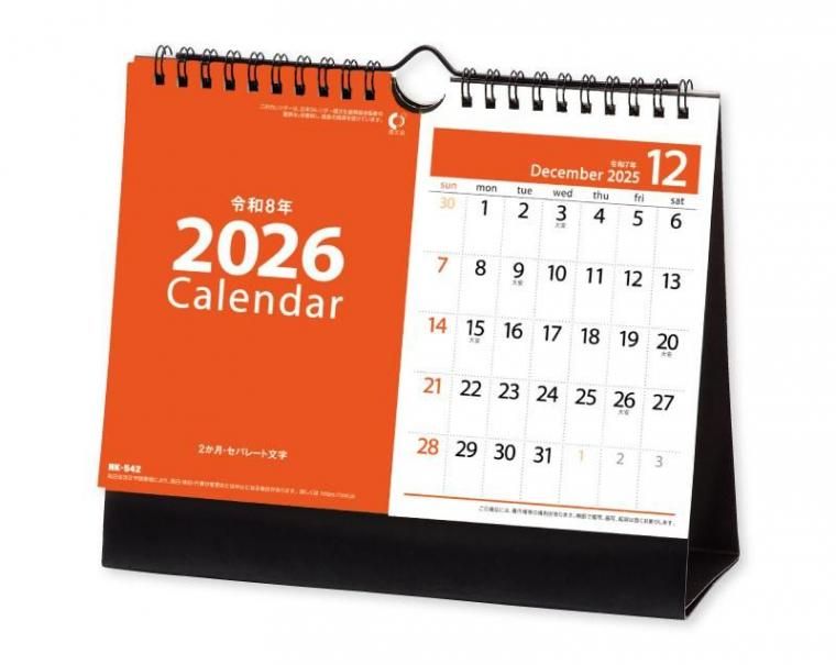 型番 NK-542 卓上カレンダー 2ヶ月・セパレート文字 名入あり 30冊 決済ページ